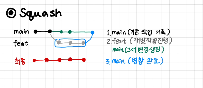 ๋ธ๋์น์์ ์์ฑํ๋ ์ปค๋ฐ ๊ธฐ๋ก๋ค์ด ์์ด์ง๊ณ squash merge๋ฅผ ์งํํ ๋ ์